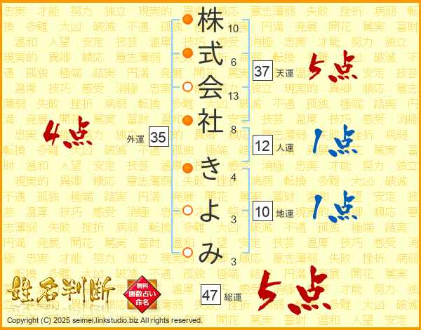 株(10画)式(6画)会(13画)社(8画) き(4画)よ(3画)み(3画)