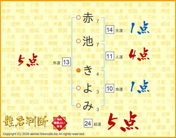 赤池きよみさんの総運は24画の5点!