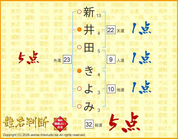 新(13画)井(4画)田(5画) き(4画)よ(3画)み(3画)