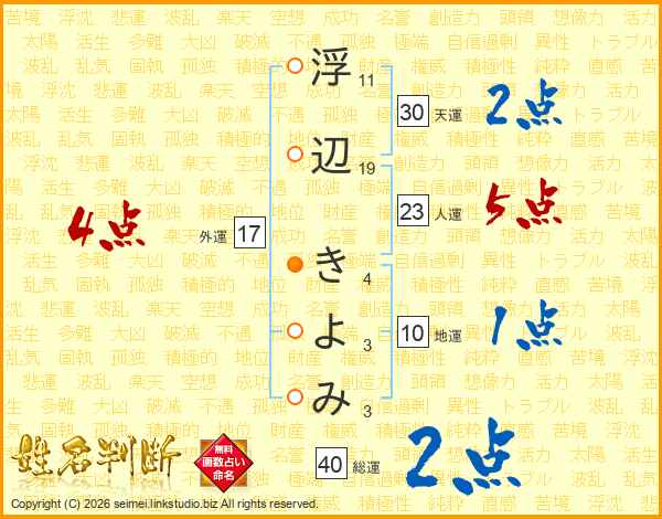浮辺きよみさんの総運は40画の2点!