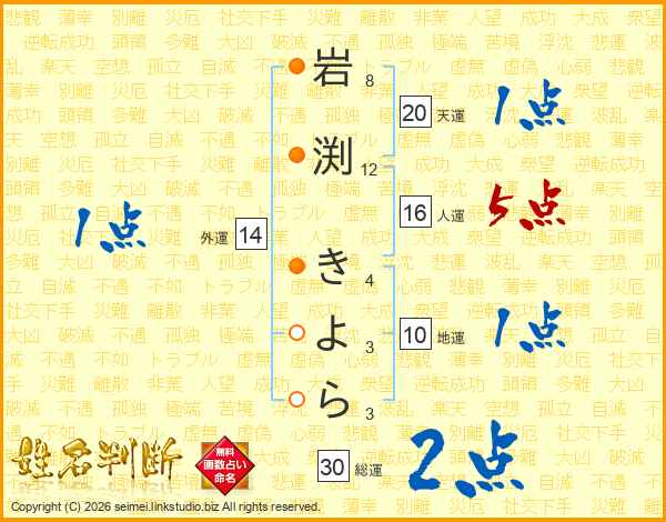 岩渕きよらさんの天運は20画の1点!