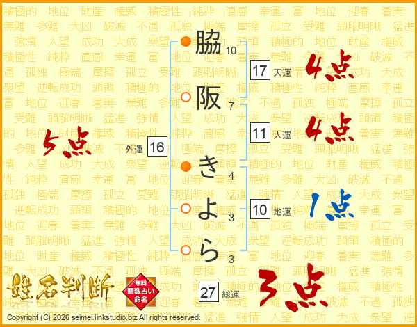 脇(10画)阪(7画) き(4画)よ(3画)ら(3画)