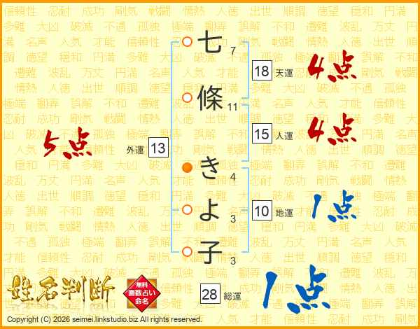 七(7画)條(11画) き(4画)よ(3画)子(3画)