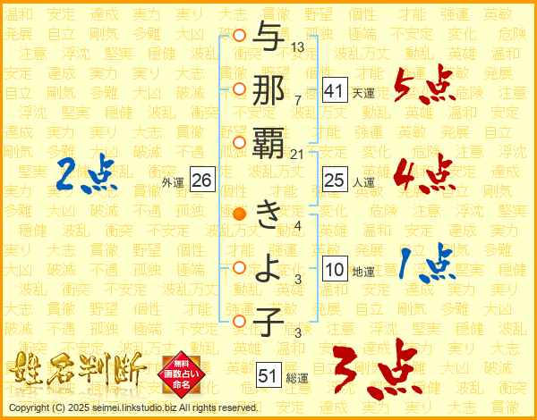 与那覇きよ子さんの人運は25画の4点!