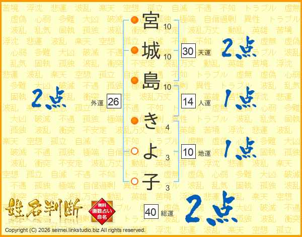 宮(10画)城(10画)島(10画) き(4画)よ(3画)子(3画)