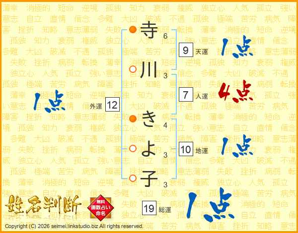 寺川きよ子さんの総運は19画の1点!