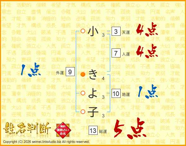 小きよ子さんの総運は13画の5点!