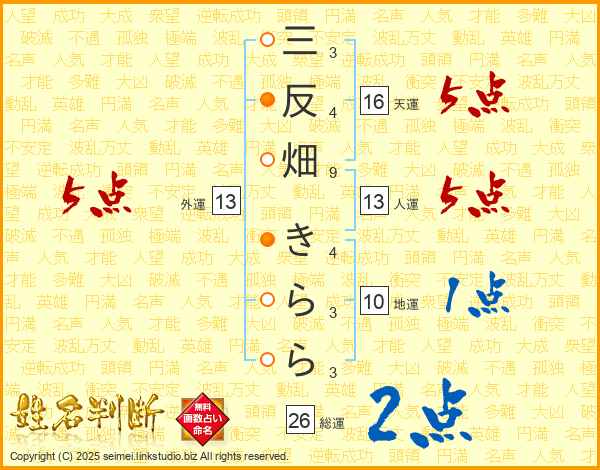 三(3画)反(4画)畑(9画) き(4画)ら(3画)ら(3画)