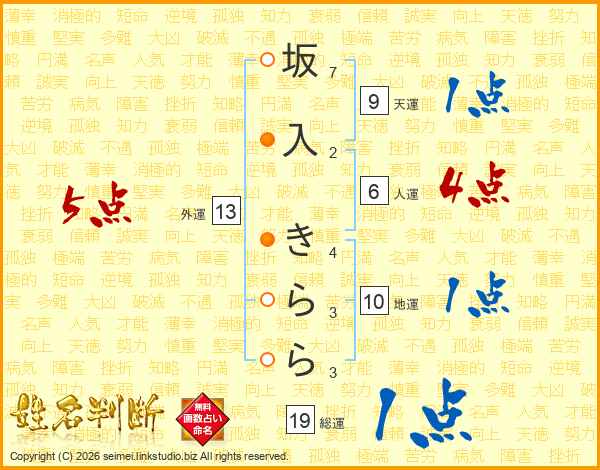 坂入きららさんの外運は13画の5点!