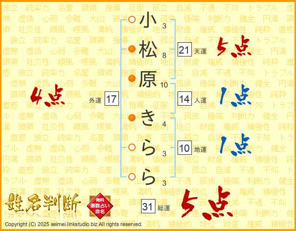 小松原きららさんの総運は31画の5点!