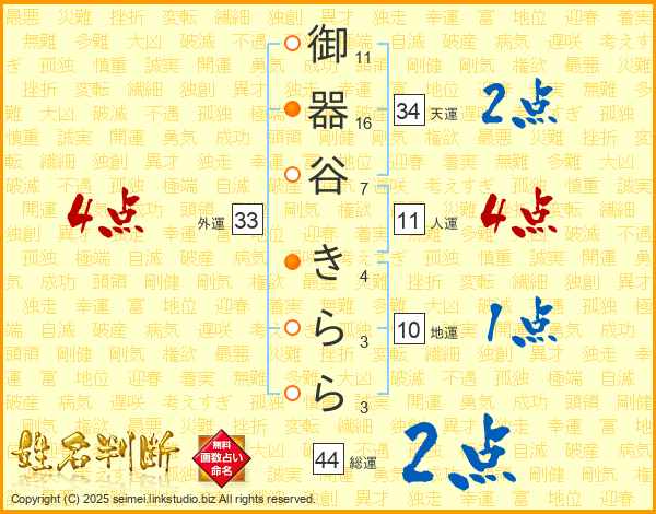 御器谷きららさんの総運は44画の2点!