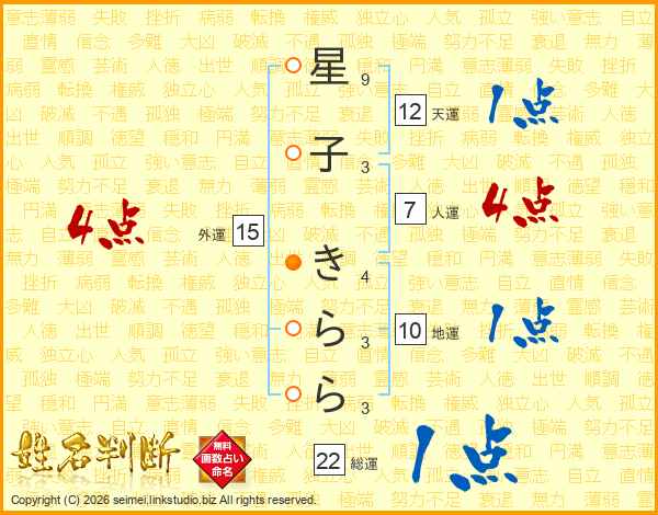 星子きららさんの総運は22画の1点!