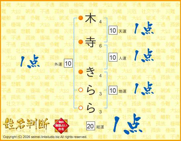 木寺きららさんの総運は20画の1点!