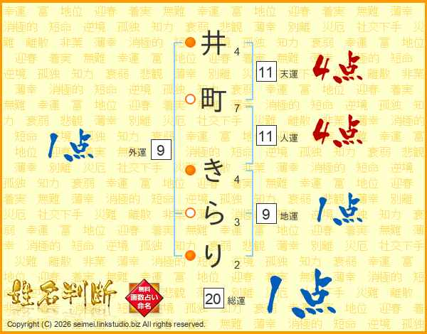 井(4画)町(7画) き(4画)ら(3画)り(2画)