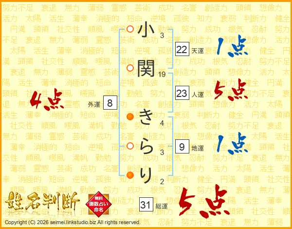 小関きらりさんの総運は31画の5点!