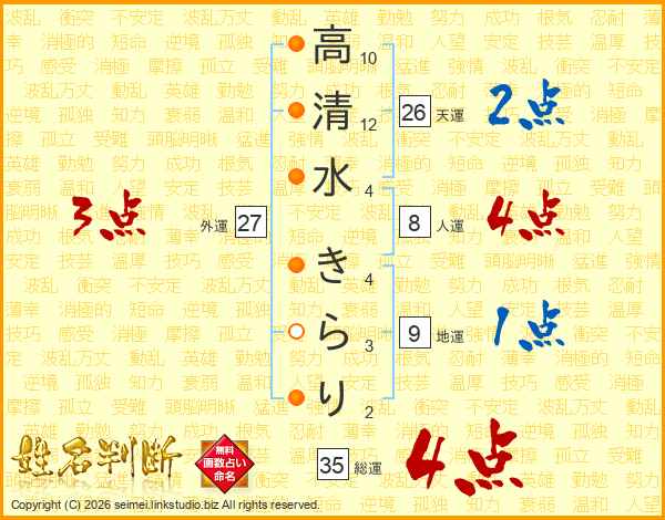 高清水きらりさんの総運は35画の4点!