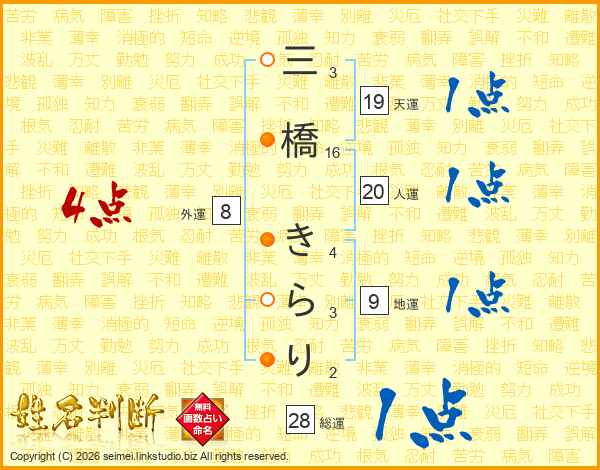 三(3画)橋(16画) き(4画)ら(3画)り(2画)
