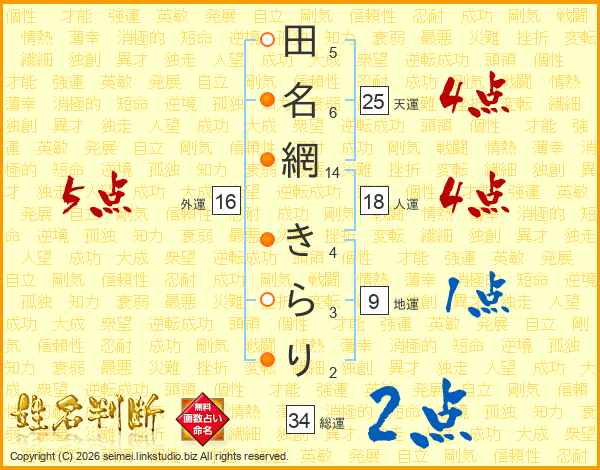 田名網きらりさんの天運は25画の4点!