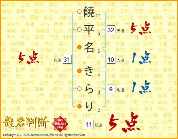 饒(21画)平(5画)名(6画) き(4画)ら(3画)り(2画)