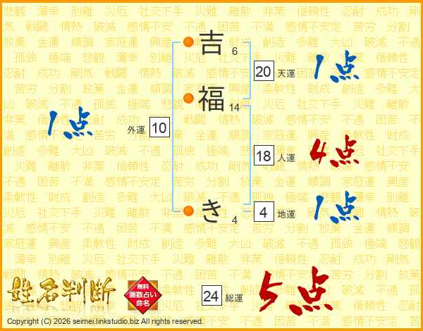 吉福きさんの総運は24画の5点!