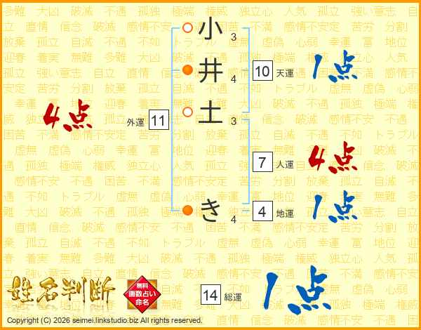 小井土きさんの総運は14画の1点!