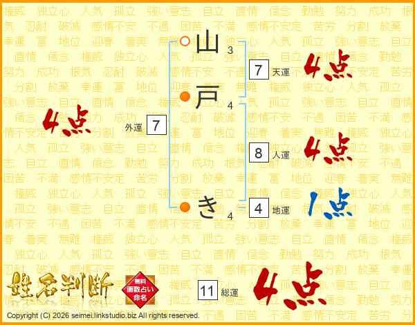 山戸きさんの総運は11画の4点!