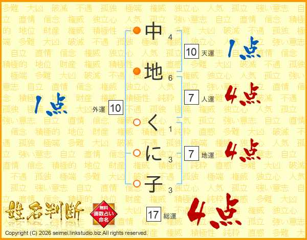 中地くに子さんの総運は17画の4点!