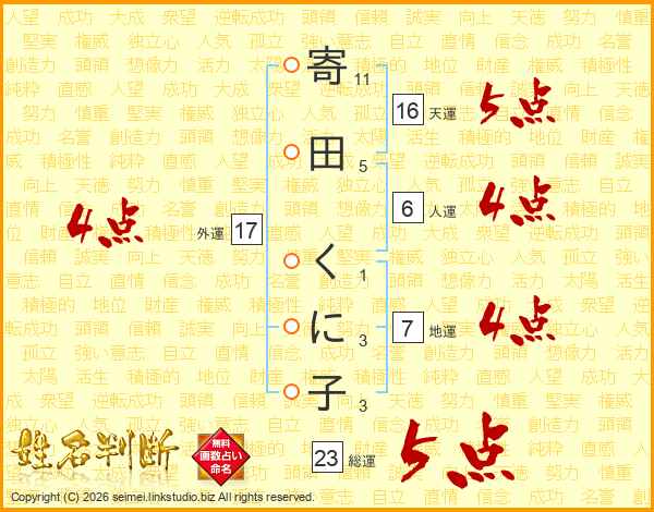 寄(11画)田(5画) く(1画)に(3画)子(3画)
