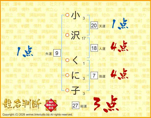 小(3画)沢(17画) く(1画)に(3画)子(3画)