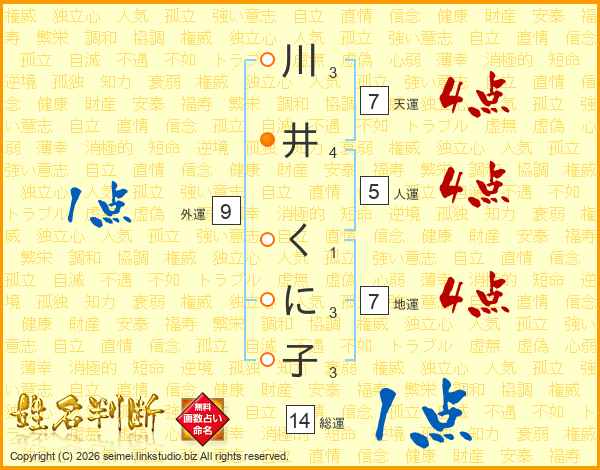 川井くに子さんの総運は14画の1点!