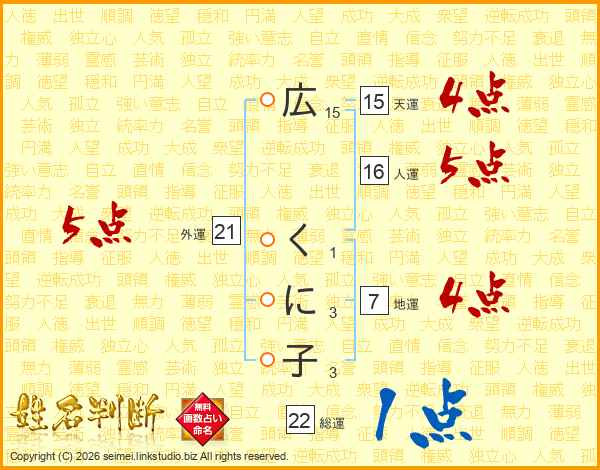 広くに子さんの総運は22画の1点!