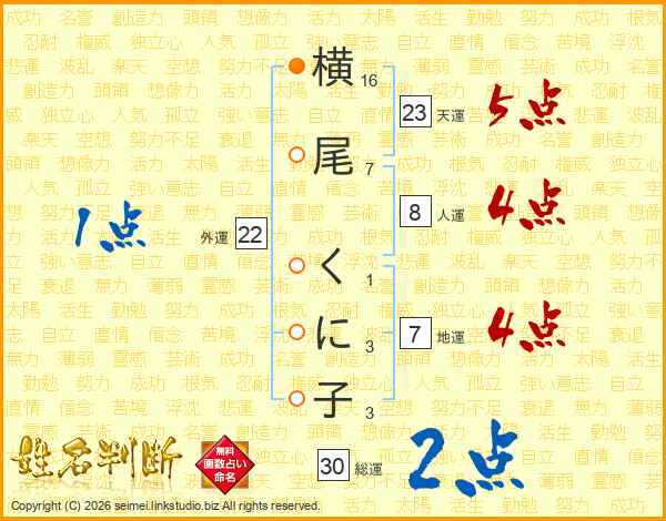 横尾くに子さんの総運は30画の2点!