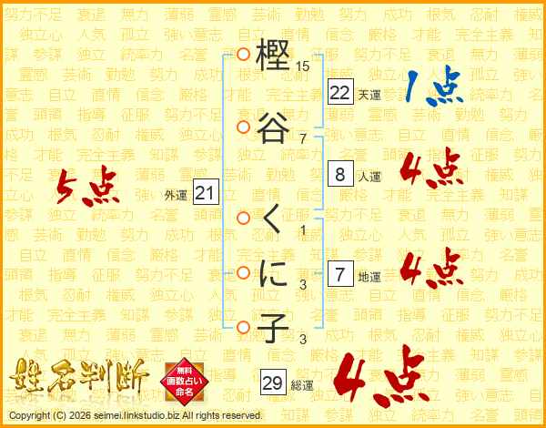 樫谷くに子さんの総運は29画の4点!