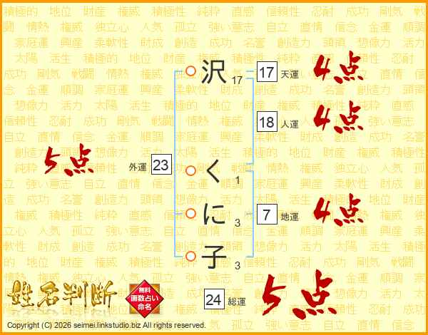 沢くに子さんの外運は23画の5点!