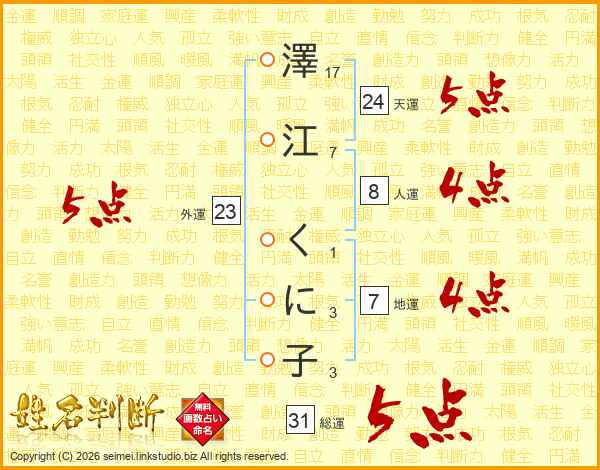 澤江くに子さんの総運は31画の5点!
