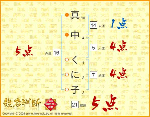 真中くに子さんの総運は21画の5点!