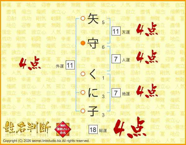 矢守くに子さんの天運は11画の4点!