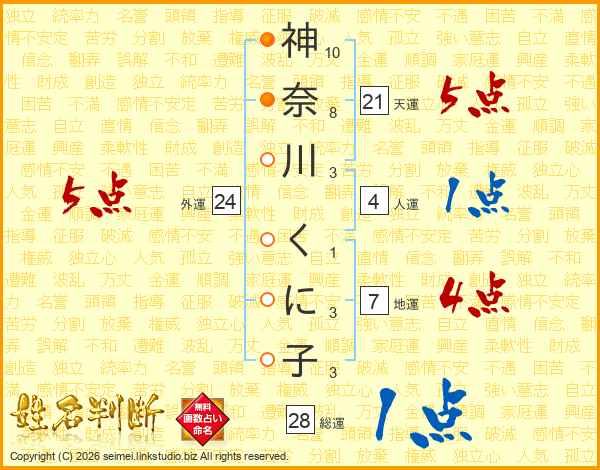 神奈川くに子さんの総運は28画の1点!