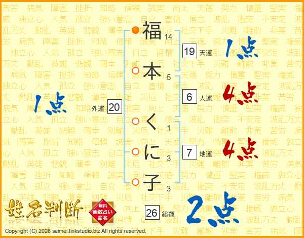 福本くに子さんの総運は26画の2点!