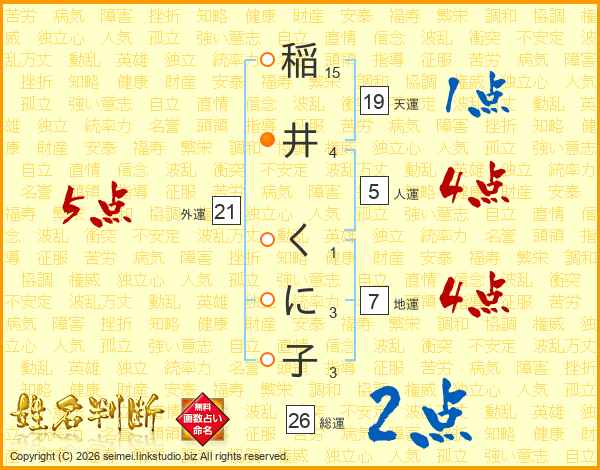 稲井くに子さんの総運は26画の2点!