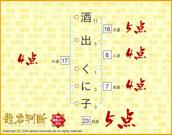酒出くに子さんの総運は23画の5点!