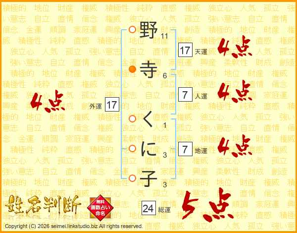 野寺くに子さんの天運は17画の4点!