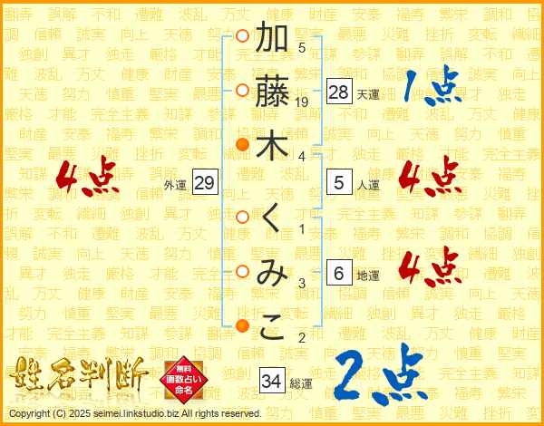 加藤木くみこさんの外運は29画の4点!