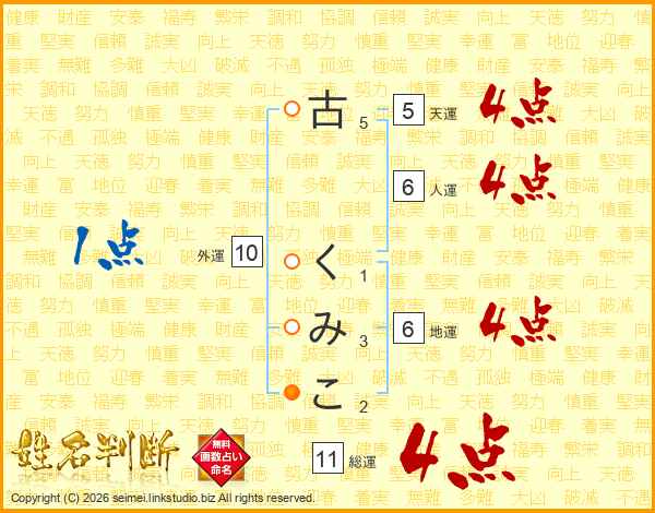 古くみこさんの総運は11画の4点!