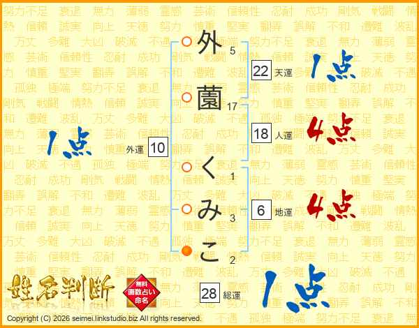 外薗くみこさんの人運は18画の4点!