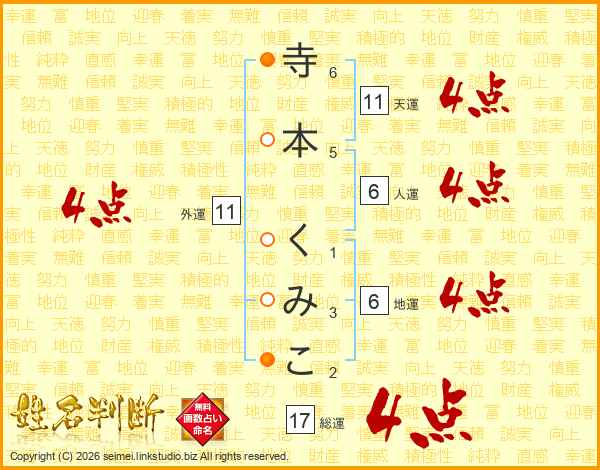 寺本くみこさんの天運は11画の4点!
