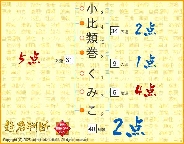 小比類巻くみこさんの総運は40画の2点!