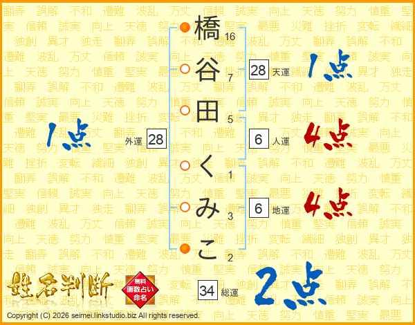 橋(16画)谷(7画)田(5画) く(1画)み(3画)こ(2画)