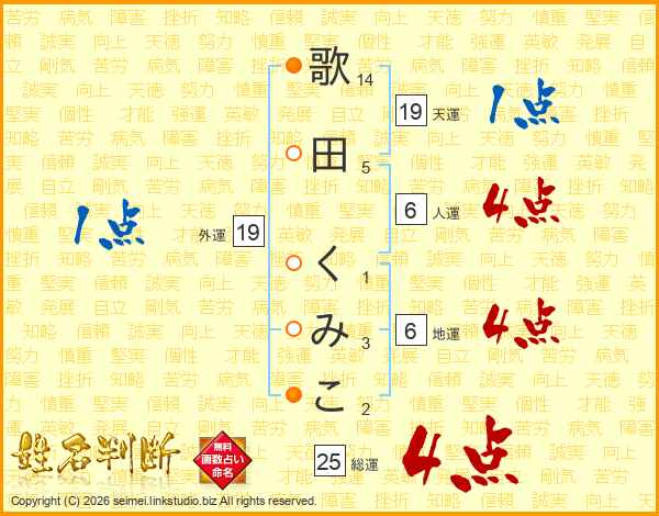 歌田くみこさんの総運は25画の4点!