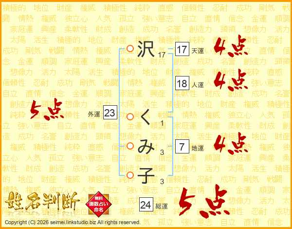 金運 順調 家庭運 興産 柔軟性 財成 創造